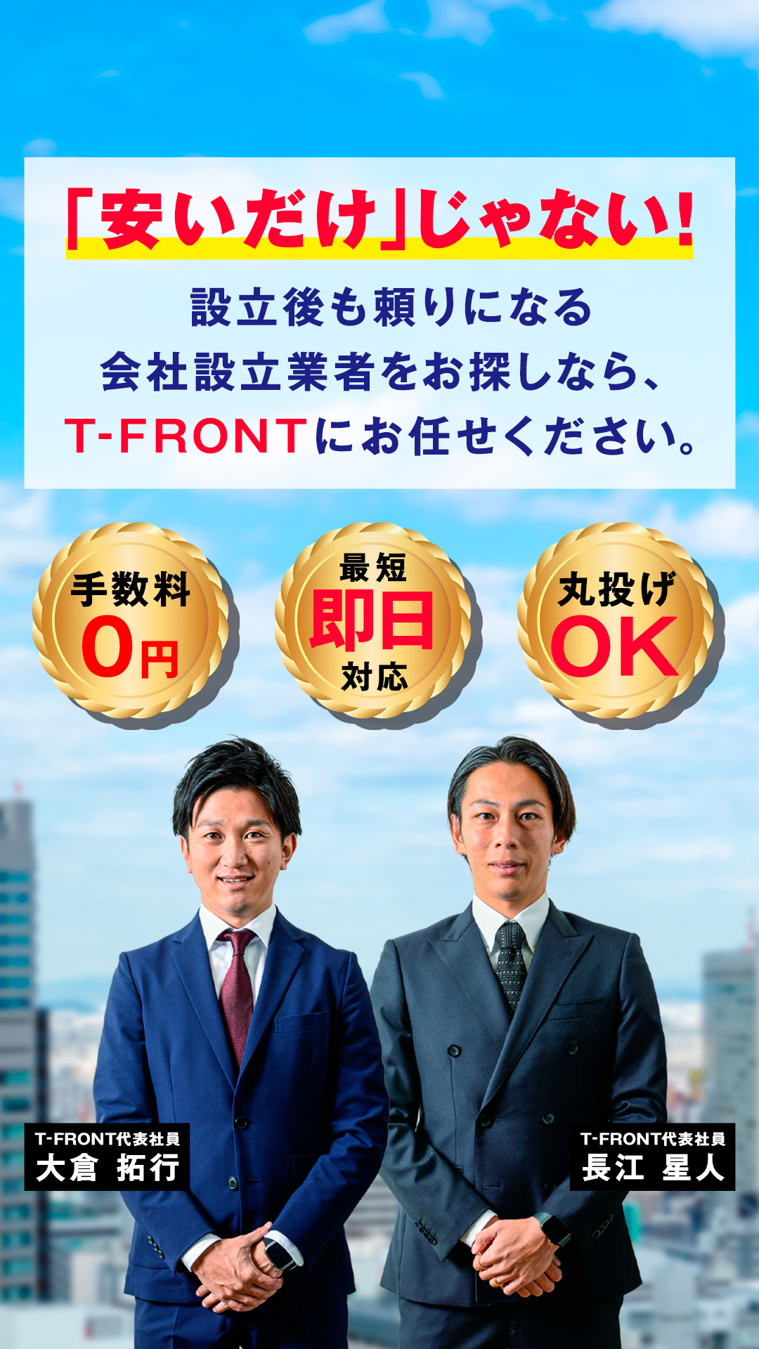 T-FRONTでは自分で設立するよりもずっとお得なプランを